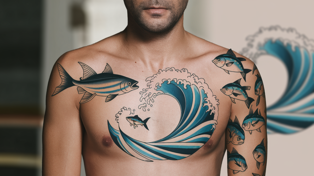 A flying fish tattoo is a popular design with an amazing image of a fish jumping out of water. This tattoo represents freedom, movement, and a departure from the usual. It can be a powerful symbol of breaking free from limits, similar to the sense of relief that many fly fishermen experience when surrounded by nature.